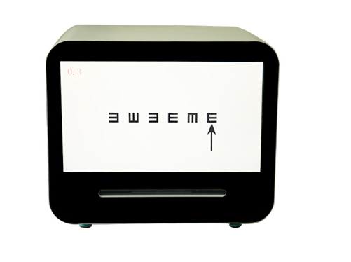 如附图所示,主板5包括微处理器(含存储器)及其连接的外设,主要包括 液晶屏3和键盘4,产生一个如图1中不同大小的并且在运动的图像,如人的眼 睛对此图像有视力则眼睛的视线随此运动的图像作相应运动,安全准确地测出婴 幼儿的视力。不同的大小的图像则对应了不同的视力。